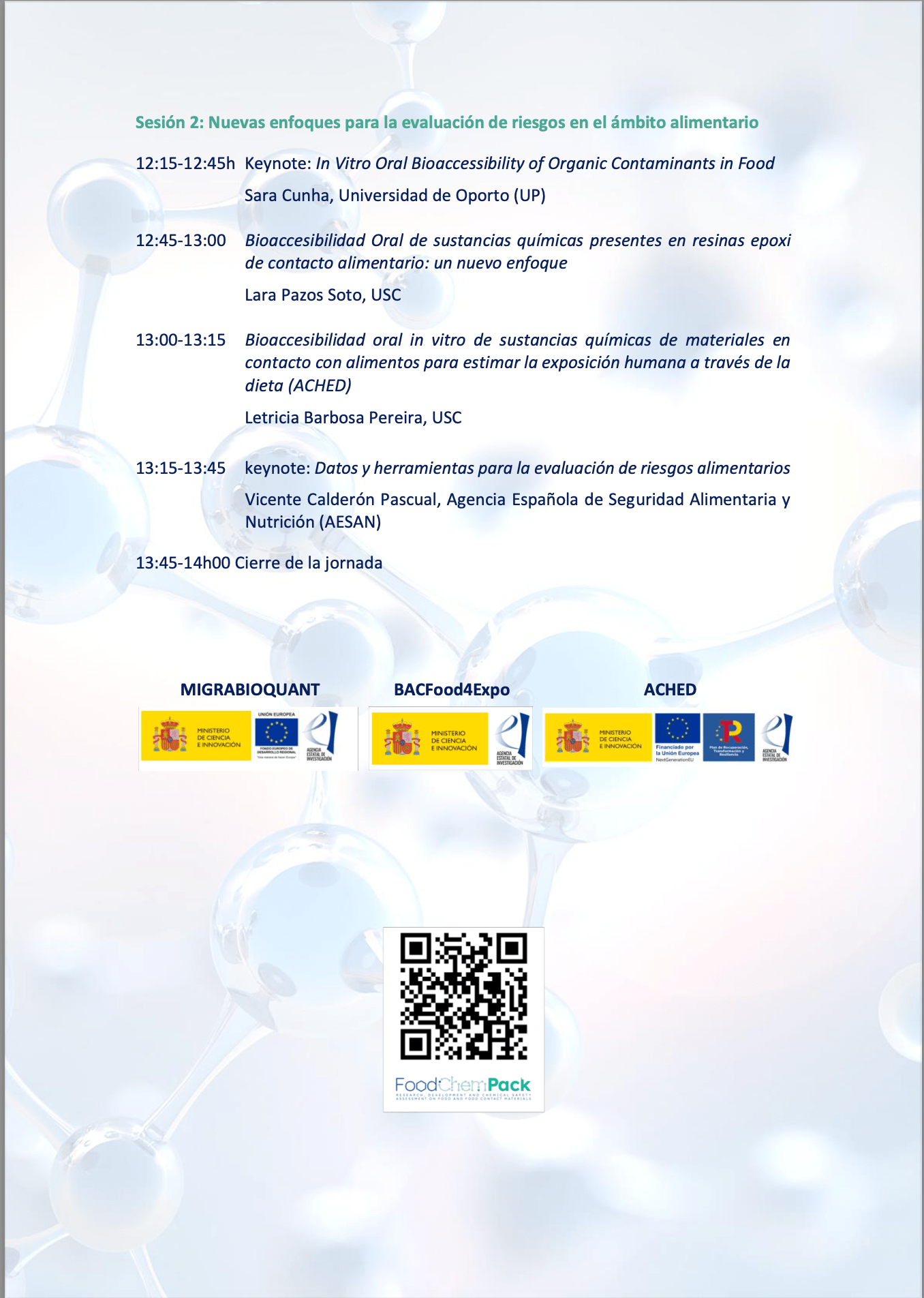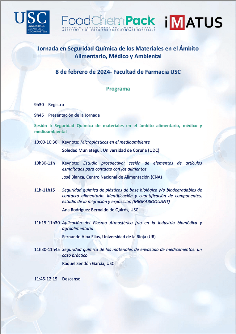 Jornada en Seguridad Química de los Materiales en el Ámbito Alimentario, Médico y Ambiental
